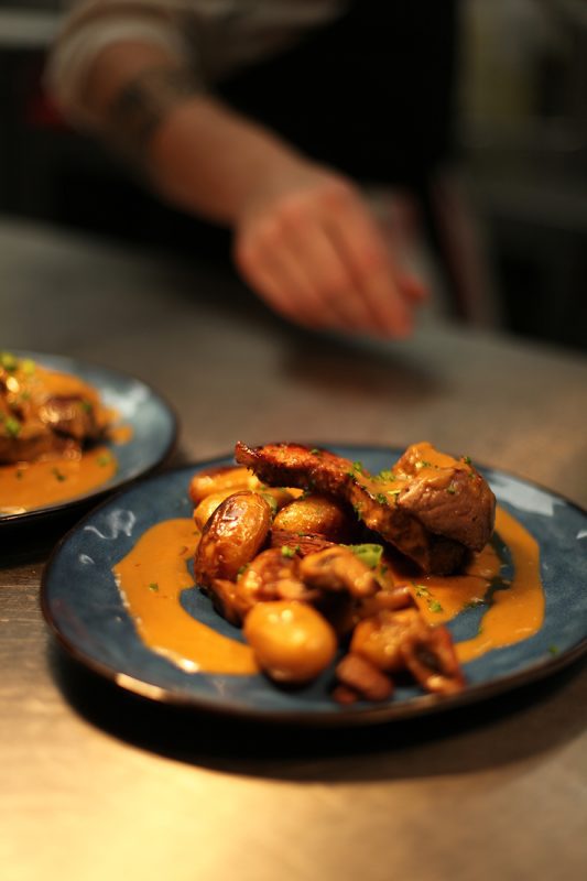 Au menu 3 plats de la semaine : 1 viande, 1 poisson et un plat végétarien à 15€ ou en formule à 19,5€ avec un dessert. Nous avons également quelques plats carte (Tartare, andouillette, pièce de boeuf grillée, salades).